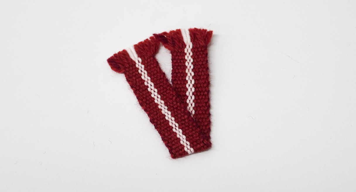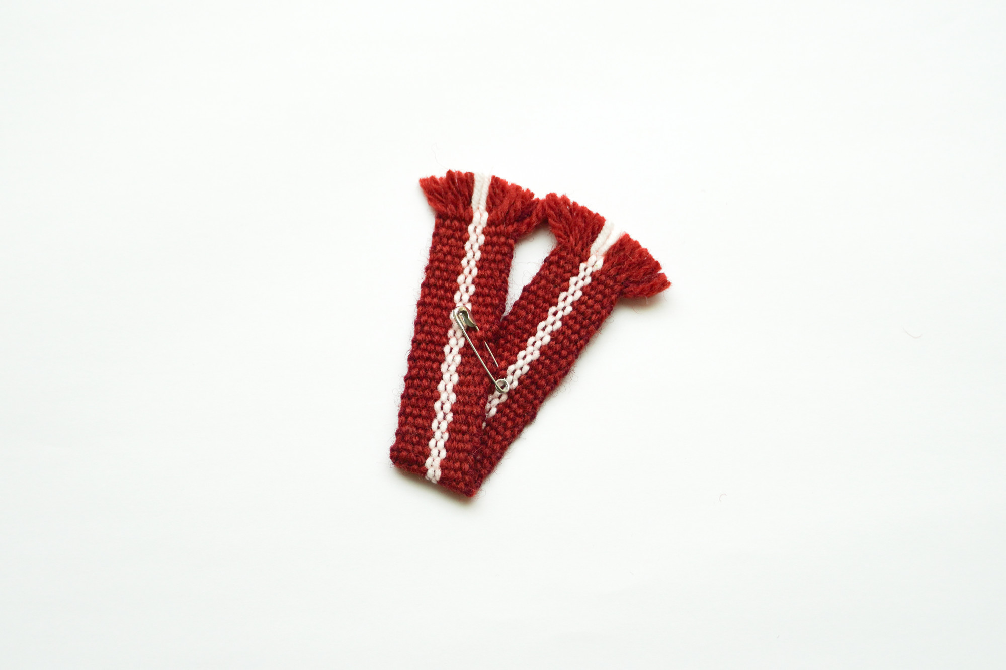 Red and white wool brooch