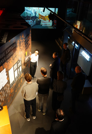 The Museum of the Occupation of Latvia hosted a memorial event on 6 July, in the courtyard of the former KGB building, for the victims of the Communist regime who were killed in 1941, and later reburied, creating Riga’s Forest cemetery “White Crosses”. During the event the latest discoveries were described by KGB crime researcher and museum historian, Inese Dreimane, and there was a performance by the male choir “Vilki”. The travelling exhibition, “Par mums vēl ilgi zeme skums” (for a long time the land will be sad) , created by the Museum of the Occupation of Latvia, was also displayed. The exhibition is dedicated to the 99 victims of Communist Terror who were shot and buried, by the KGB, in Riga Central Prison.