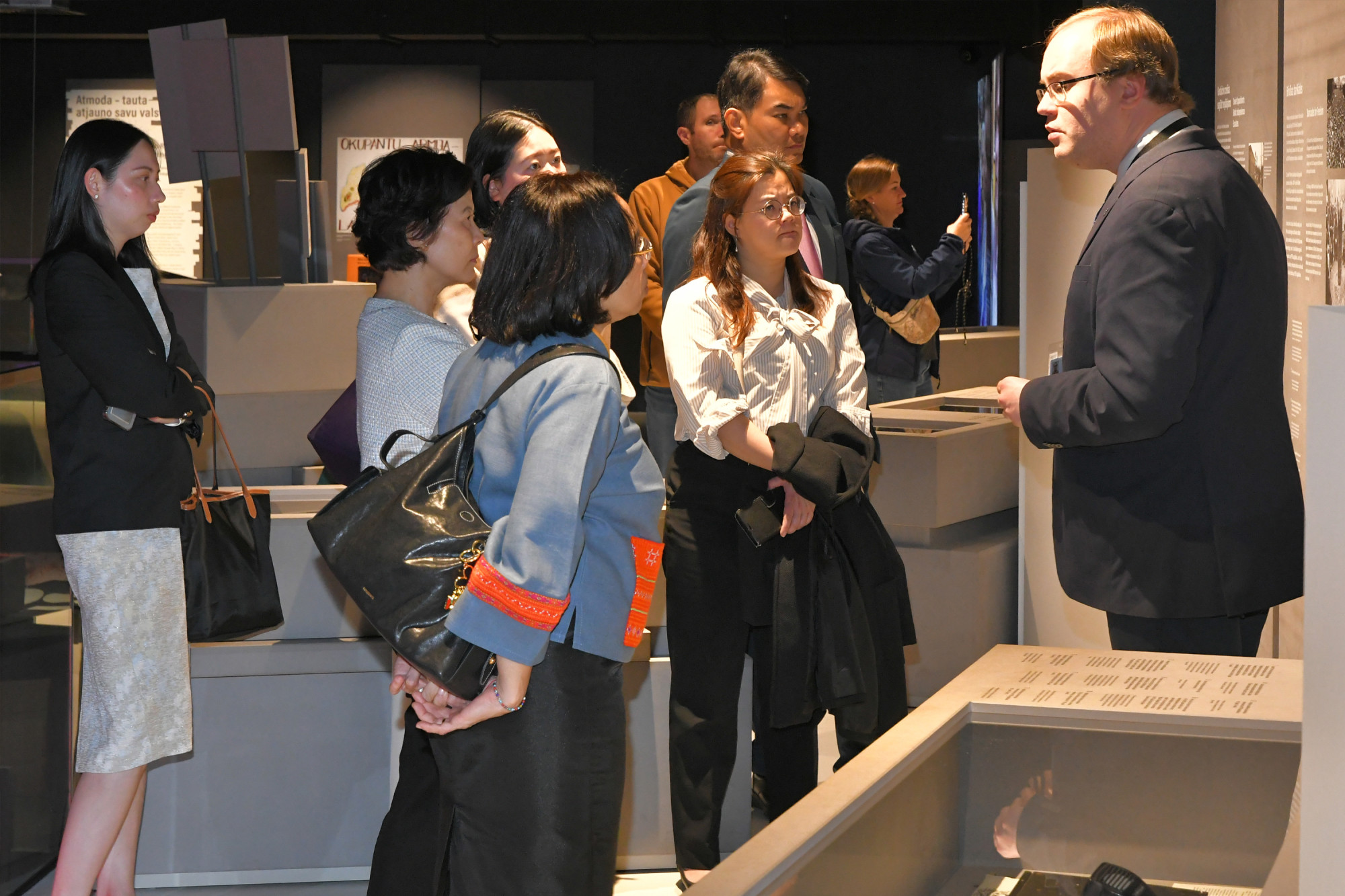 Deputy Director of the Museum, Taiga Kokneviča, welcomed the guests, and guide, Nikolajs Putiļins, led a tour through the exhibition.