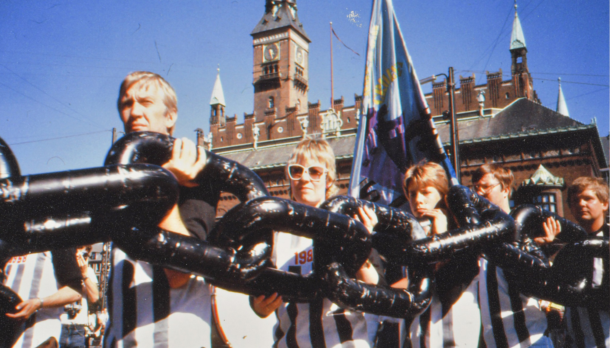 Ķēdes nesēji protesta gājienā Kopenhāgenā. Māra Ķirsona personīgais arhīvs.