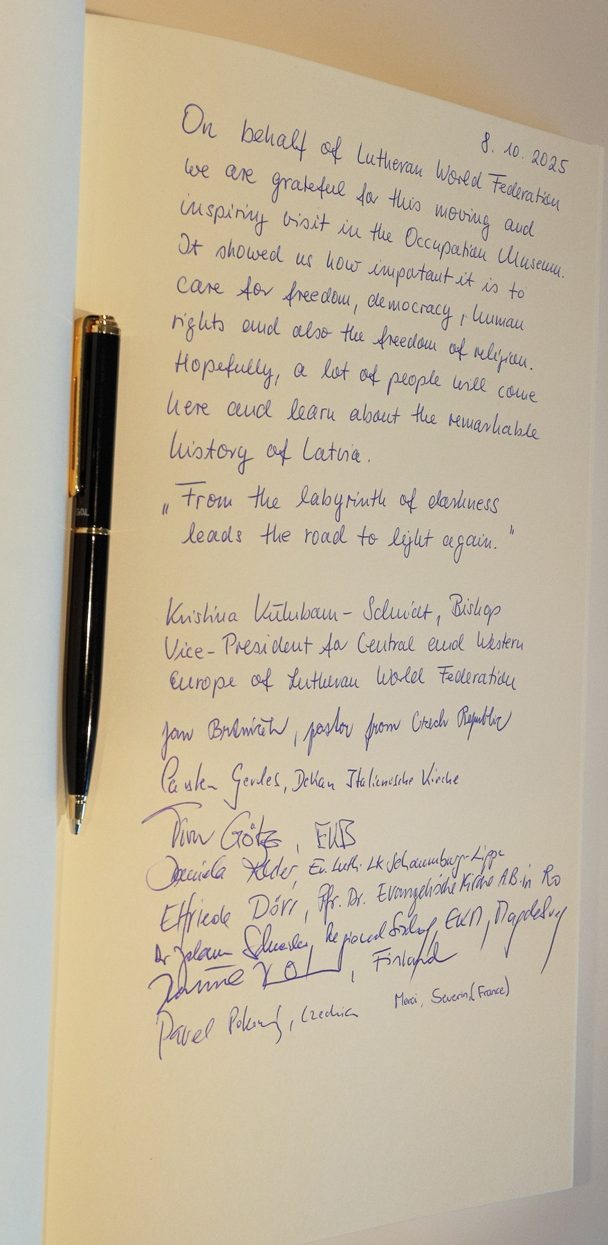 8.oktobrī Eiropas Baznīcu vadības konsultācijas pasākuma Rīgā ietvaros Latvijas Okupācijas muzejā viesojās Pasaules Luterāņu federācijas (the Lutheran World Federation) Eiropas baznīcas vadības pārstāvju delegācija.
