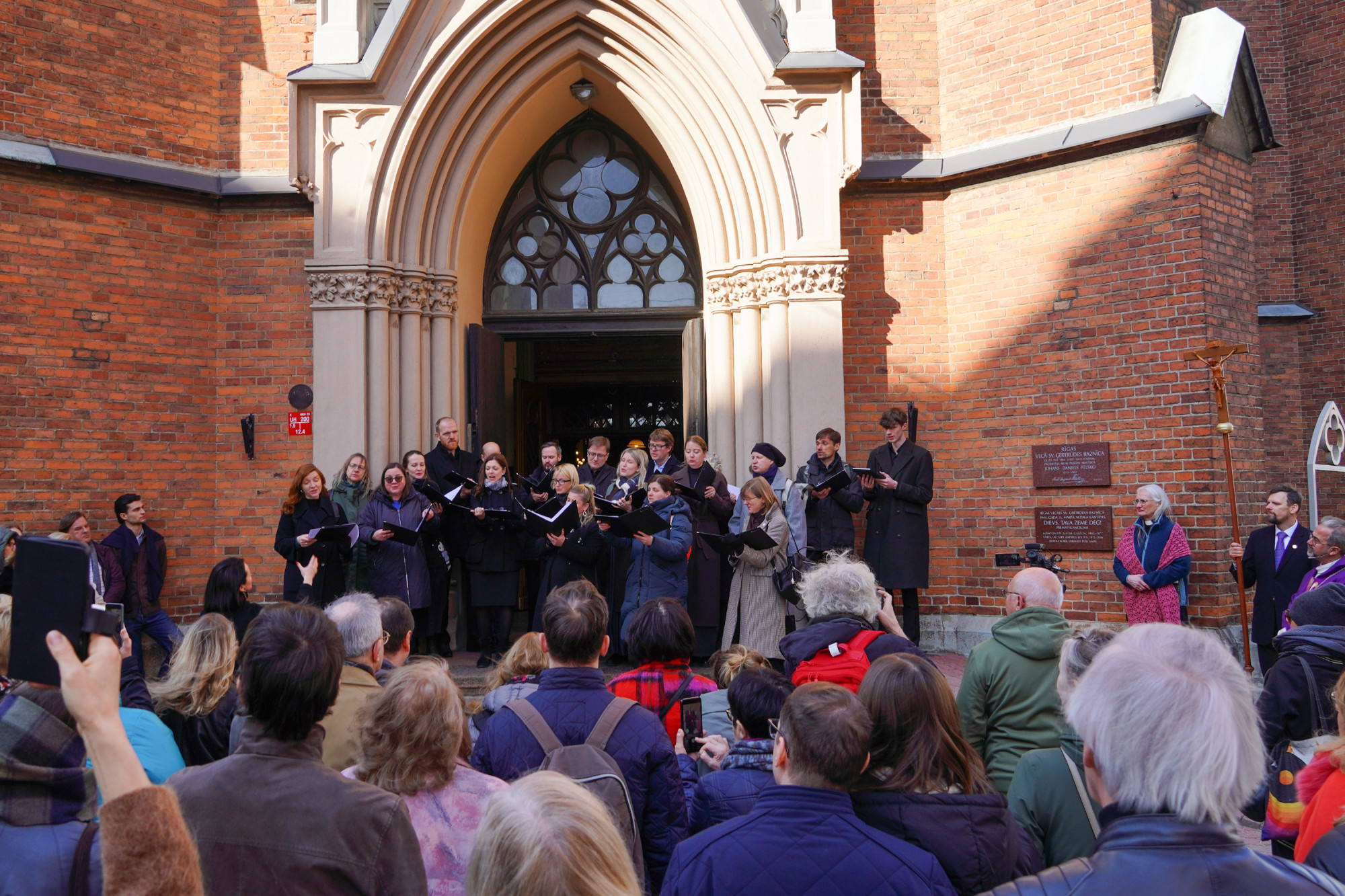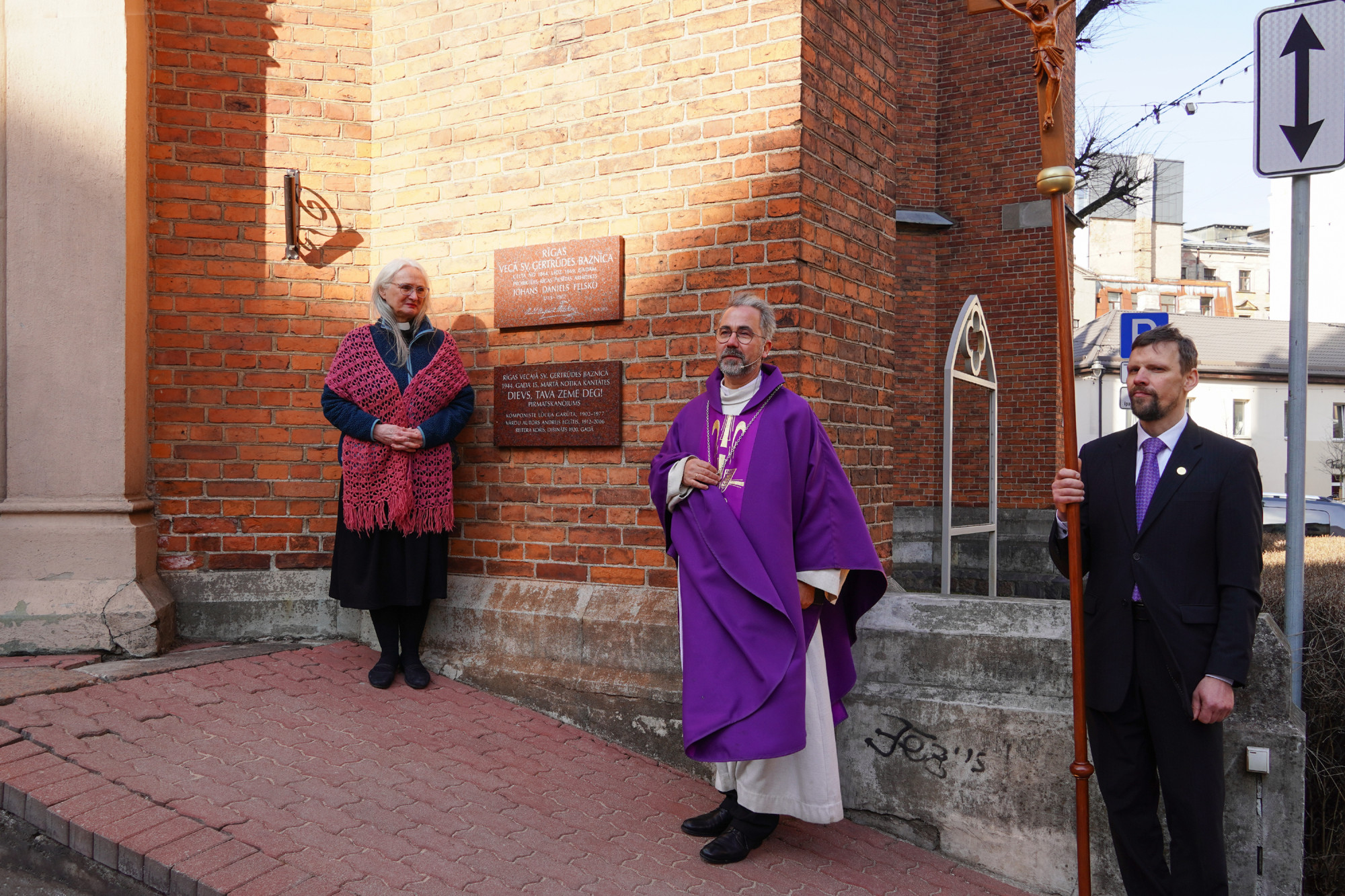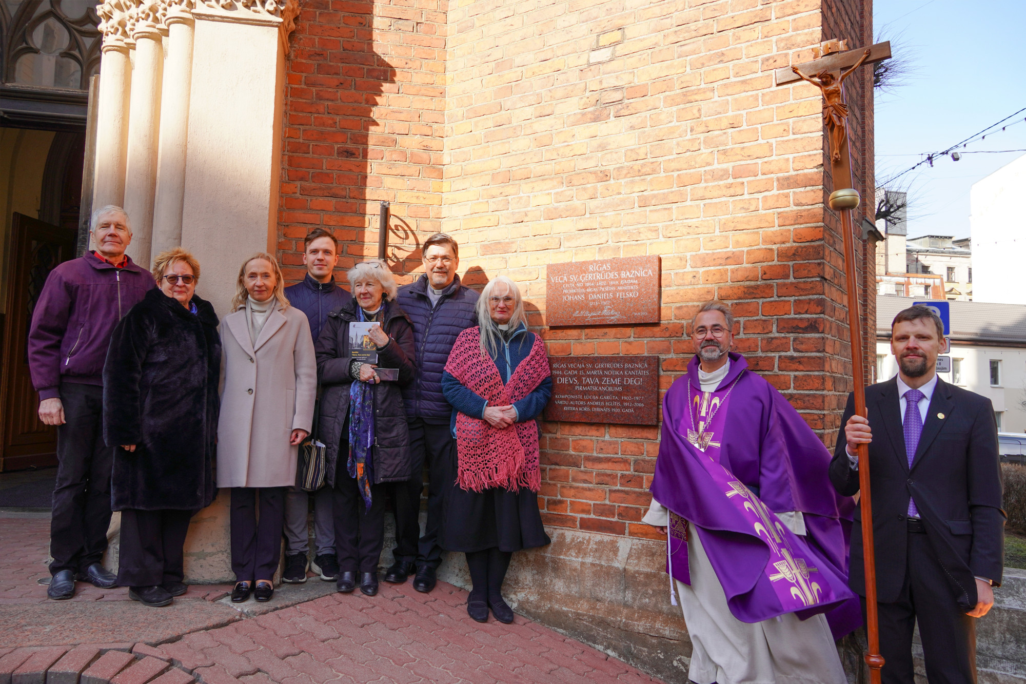 Draudzes dievkalpojumā pirms svinīgās plāksnes atklāšanas skanēja kantātes fragmenti Latvijas Universitātes kora DeCoro un diriģenta Pētera Vaickovska izpildījumā. Ērģeles spēlēja ērģelniece Kristīne Adamaite.