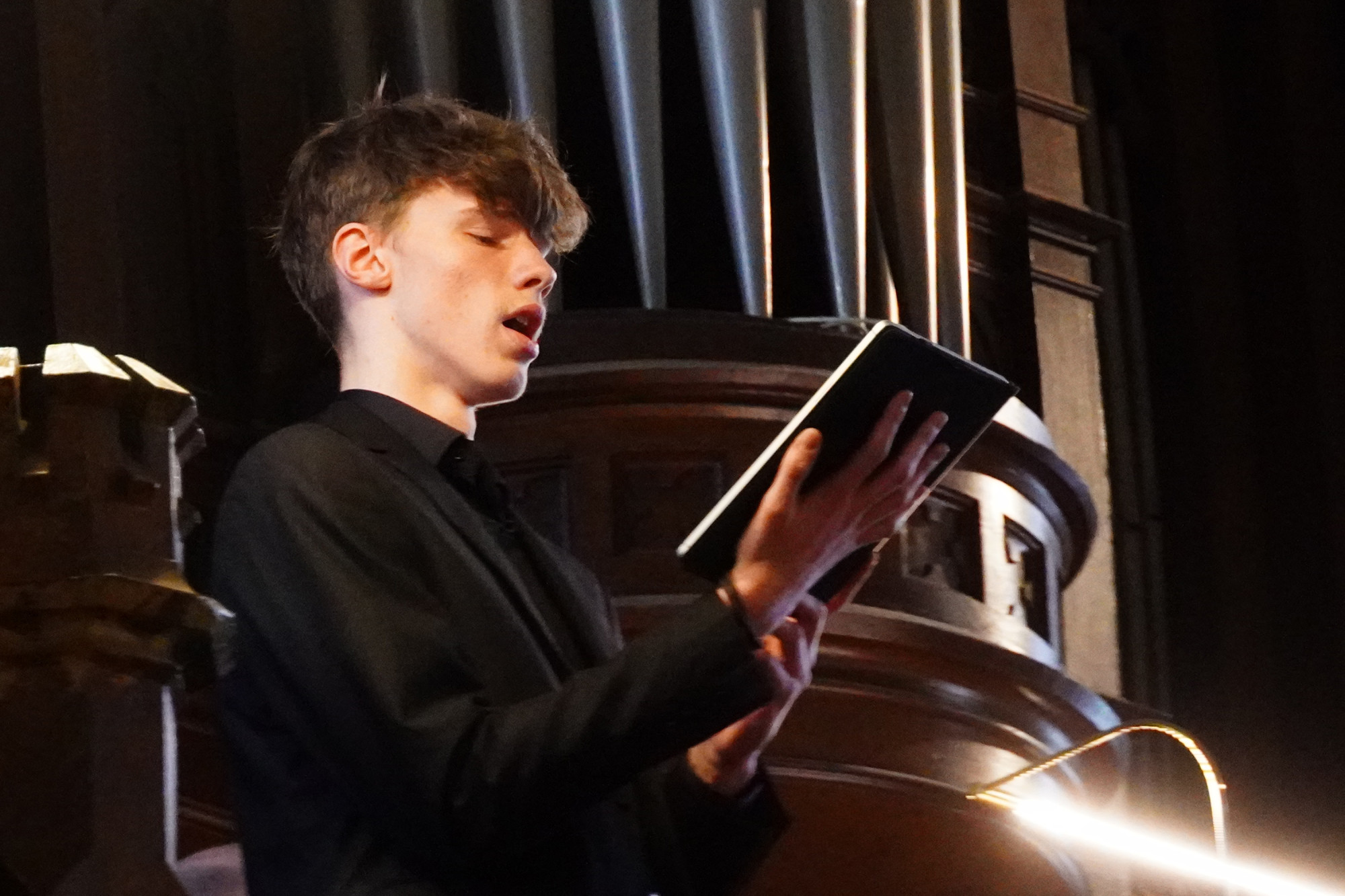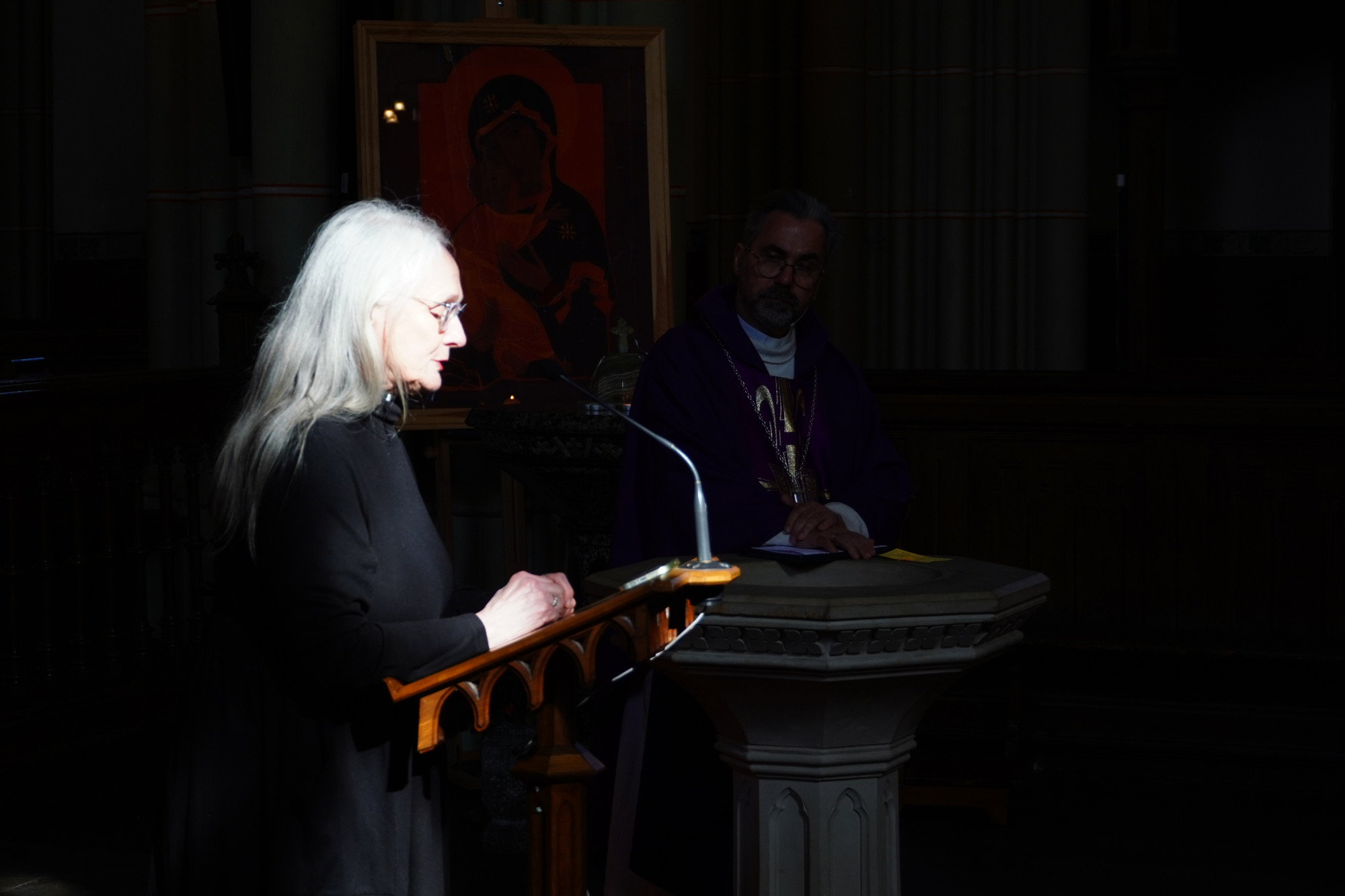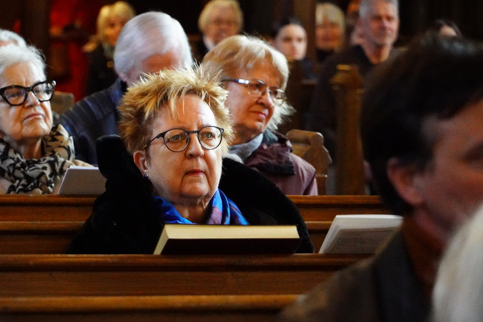 Draudzes dievkalpojumā pirms svinīgās plāksnes atklāšanas skanēja kantātes fragmenti Latvijas Universitātes kora DeCoro un diriģenta Pētera Vaickovska izpildījumā. Ērģeles spēlēja ērģelniece Kristīne Adamaite.