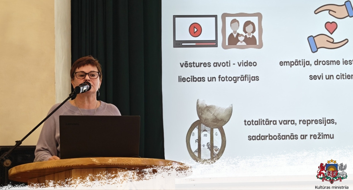 Izglītības nodaļas vadītāja Inguna Role prezentēja video stāstu sēriju “Sieviete. Pieci stāsti par” un iepazīstināja ar tās izmantošanas iespējām izglītības procesā. Lektore uzsvēra, ka Muzeja ekspozīcijā un krājumā ir liecības par daudzām smagām tēmām un notikumiem Latvijas 20. gadsimta vēsturē – par okupācijām, karu un represijām. Šo notikumu līdzdalībnieces ir arī sievietes, kaut lēmumus par tiem ir pieņēmuši vīrieši. Sērijā iekļauti 13 sieviešu atmiņu fragmenti, kas apkopoti piecos stāstos. Video stāstu sēriju iespējams izmantot ne tikai vēstures mācību stundās, bet arī ģeogrāfijā, mācoties par klimatu un dabas resursiem, kas nosaka dzīves apstākļus un nodarbošanās veidus Sibīrijā, sociālajās zinātnēs un politikā, apgūstot tēmas par totalitāru varu, represijām un cenzūru. Sociālo zinātņu un klases stundās var runāt par empātiju, drosmi iestāties par sevi un palīdzēt citiem, par spēju pielāgoties apstākļiem un izdzīvot. Vai sadarbošanās ar režīmu, lai pasargātu savu ģimeni ir nodevība? Video stāstu sērija palīdz skolēniem pilnveidot prasmes darbā ar vēstures avotiem - videoliecībām un fotogrāfijām.