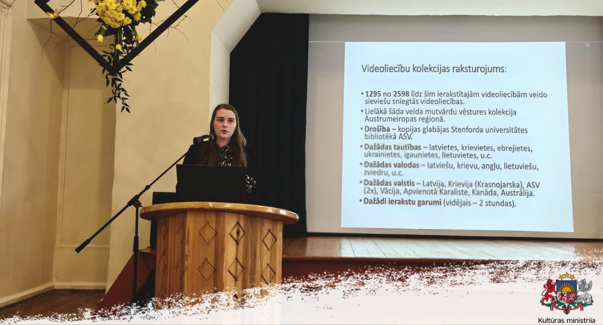 Ierakstu kolekciju sāka veidot 1996. gadā, un tajā atrodami sieviešu dzīvesstāsti, kas atspoguļo piedzīvoto gan bērnībā, gan pieaugušā vecumā. Videoliecībās atklātās tēmas ir emocionāli smagas, taču sievietes ikvienā situācijā ir spējušas saglabāt ticību labajam, rūpējušās par valodas un kultūras saglabāšanu un nodošanu nākamajām paaudzēm. Lektore iepazīstināja klātesošos ar kolekcijas izmantošanas iespējām mācību darbā, novadpētniecībā un dzimtas vēstures pētniecībā.