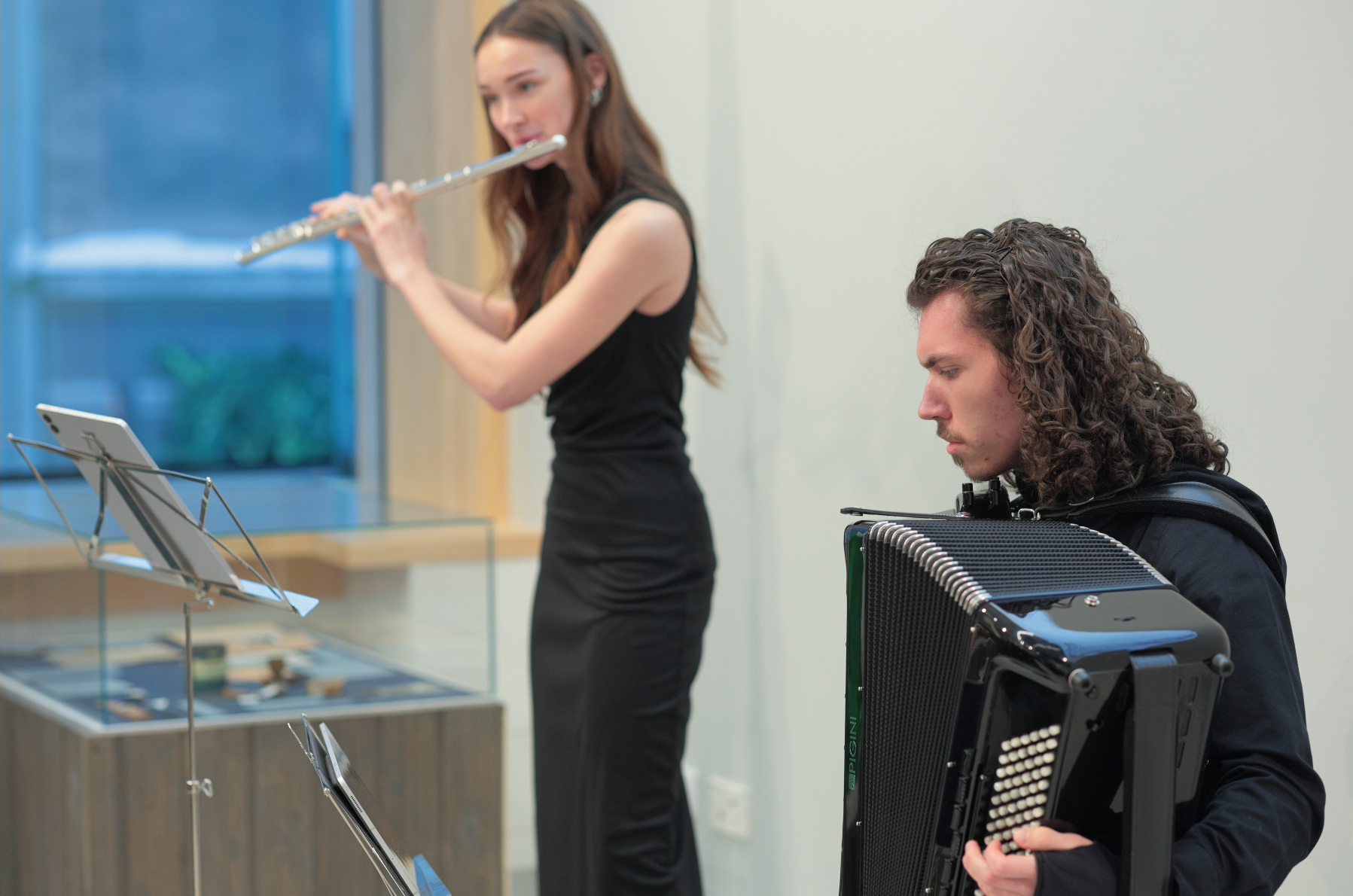 Ar Mārim tuviem skaņdarbiem klausītājus priecēja Anete Duntava (flauta) un Arkhyp Borovik (akordeons) no Jāzepa Mediņa Rīgas Mūzikas vidusskolas.