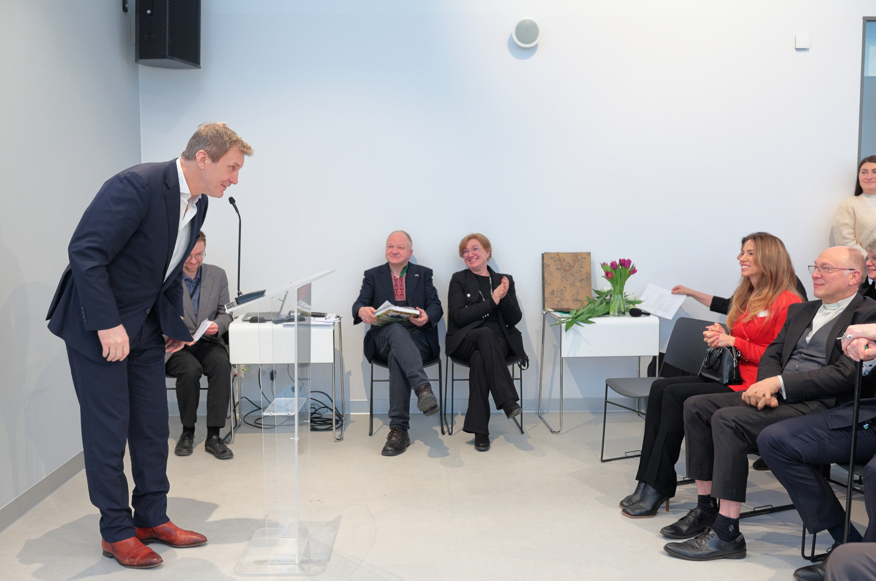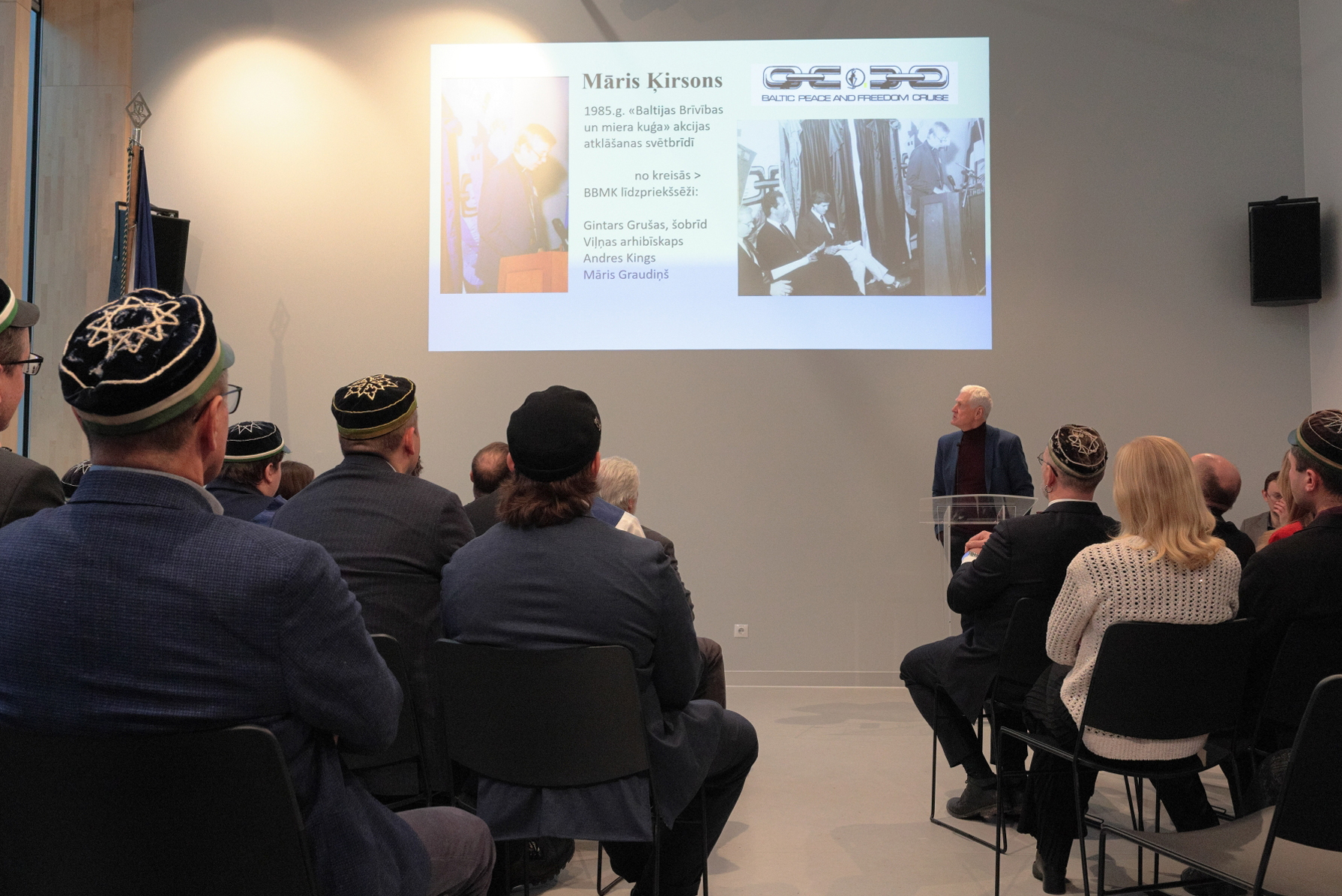 Svinīgo pasākumu vadīja publicists Arnis Sablovskis, bet uzrunas un atmiņu stāstus klātienē vai videosveicienos teica Latvijas Okupācijas muzeja direktore Solvita Vība, Latvijas evaņģēliski luteriskās Baznīcas (LELB) arhibīskaps Rinalds Grants, Romas katoļu bīskaps Andris Kravalis, LELB Kandavas iecirkņa prāvests Mārcis Zeiferts, LELB Mērsraga draudzes priekšnieks Ringolds Aveniņš ar kundzi Lilitu, hokejists un uzņēmējs Sandis Ozoliņš, studentu korporācijas filistrs Mārtiņš Eglītis, LELB bīskaps emeritus Pāvils Brūvers, viens no Baltijas brīvības un miera kuģa akcijas organizētājiem Mārtiņš Graudiņš, viens no dokumentālās filmas "Valiant! Brauciens uz brīvu Latviju" galvenajiem varoņiem Juris Bļodnieks, Romas katoļu priesteris Andris Priede, klīnikas Akrona 12 galvenais ārsts Māris Preinbergs, Māra Ķirsona dzīvesbiedre Irēna Pujāte un izstādes kurators Mārcis Romancevičs.